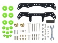 ★9mm、13mm、19mmローラーに加えて、フロントは11mm、リヤは11mmと17mmのローラーも取り付けできる前後のFRPプレートをはじめ、13mm低摩擦プラローラー、マスダンパー、スタビポールなどレース参加に欠かせない基本的なパーツがセットされています。