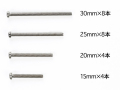 ★パーツの取り付けに使用する4種類のサイズの2mmビスです。★強度の高いステンレス製で 長さ15mmを4本、20mmを4本、25mmを8本、30mmを8本がセットされています。