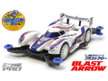 ★ミニ四駆レースに旋風を巻き起こす新マシンです! ダブルシャフトモーターが特長のミニ四駆PROシリーズに新シャーシ「MA」が採用されたブラストアローが登場。駆動効率が追求され組み立てやすさも考慮されたシンプルな一体構造シャーシが特徴です。さらに空気抵抗を少なく 各部の冷却も考え抜かれたエアロデザインとなっています。ボディはルマン24時間レースなどを走る、実車のプロトタイプレーシングカーがイメージされ実車ムードを高めるローハイトタイヤ&フィンタイプのホワイトホイールが足元を引き締めています。また、ボディに映えるレッド&ブルーのカラーリングは専用のメタリック調ステッカーで手軽に再現できます。